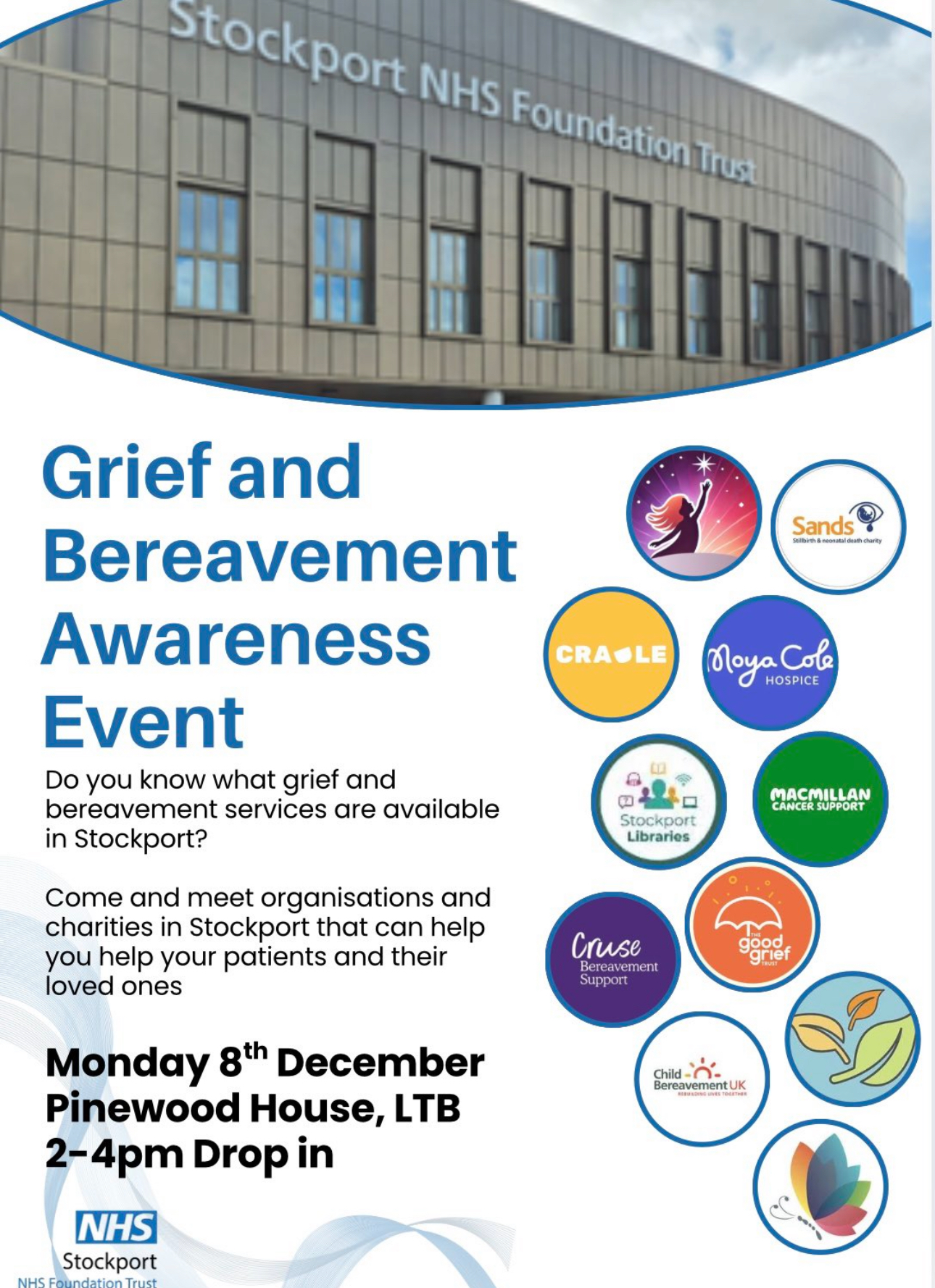 Come and meet organisations and charities in Stockport that can help you help your patients and their loved ones. 2-4pm Drop in.