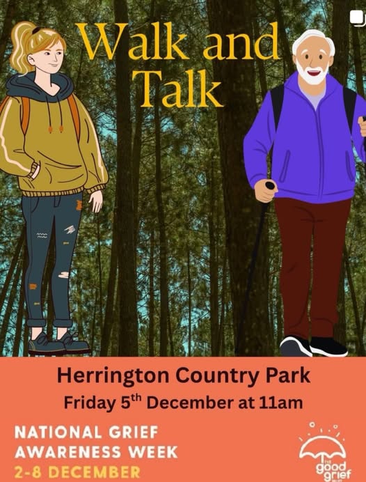 ‘During Grief Awareness Week the Canny Death Collective will be hosting a Walk and Talk through Herrington Country Park in Sunderland. The idea is to enjoy a walk in the park, chatting and enjoying nature, and maybe ending up in Love Lily cafe at the end for cake.