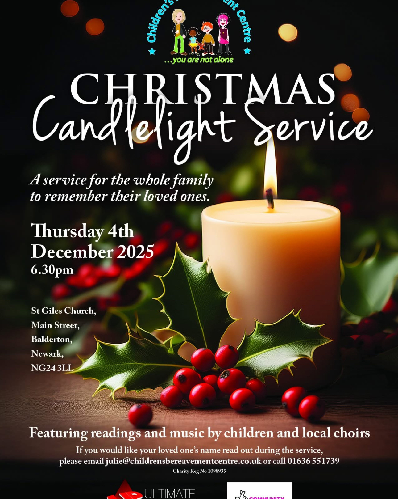The service will include Christmas carols, readings, and poems. We will read out the names of those you wish to remember at this special time of year. After the service, please join us for non-alcoholic mulled wine and mince pies. Everyone is warmly welcome to attend. 🌟 We recognise this can be a difficult time of year for many, grief support can be found The Good Grief Trust.