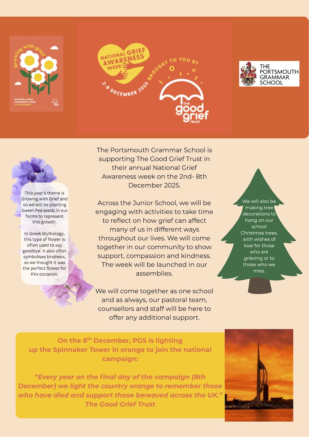The Portsmouth Grammar School is supporting The Good Grief Trust in their annual National Grief Awareness week on the 2nd- 8th December 2025.